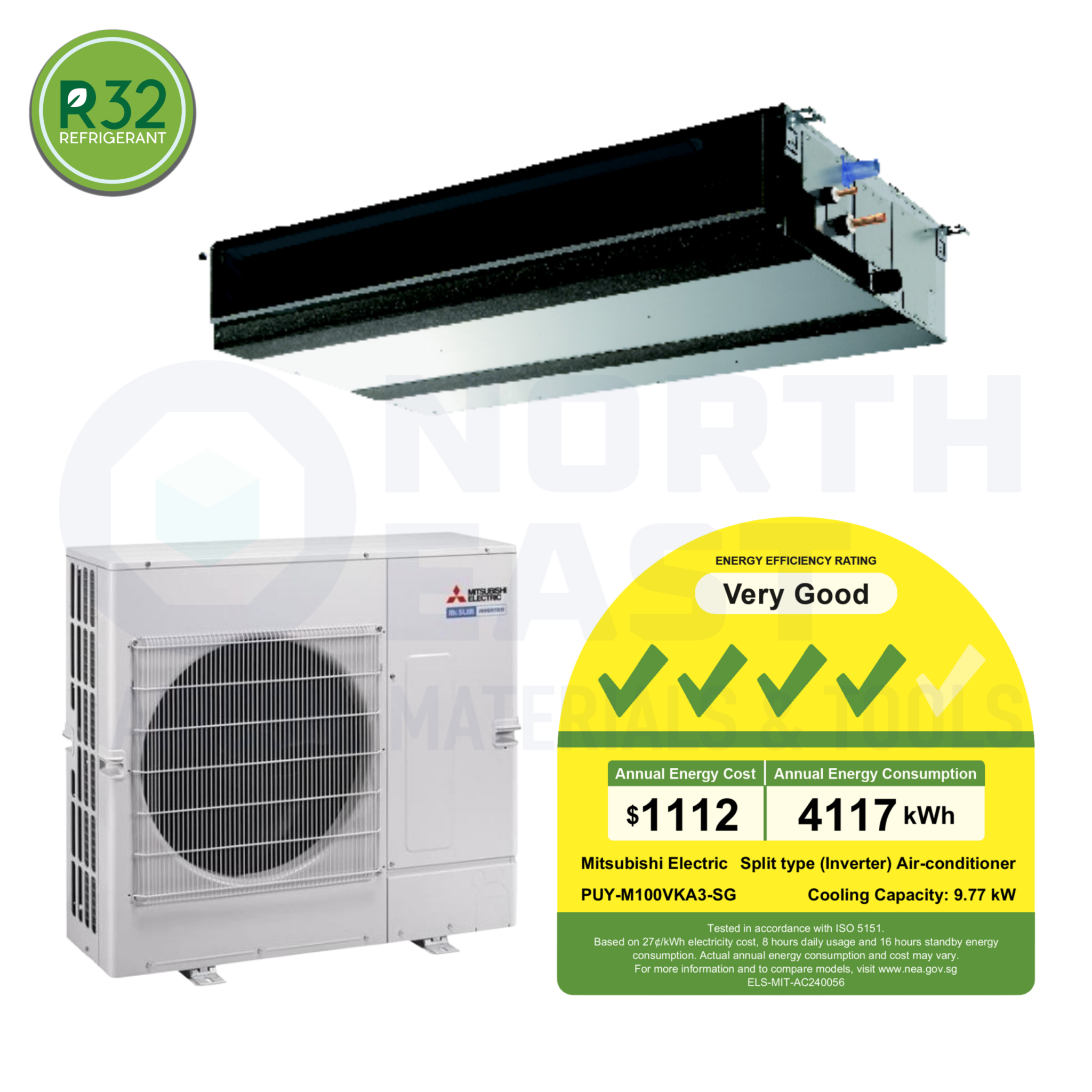 Mitsubishi Electric PUYM100VKA3/PEYM100JAL2 Ducted Aircon Capacity: 10.0kW NEA Rating: 4 Ticks Refrigerant Gas: R32 Type: Ducted